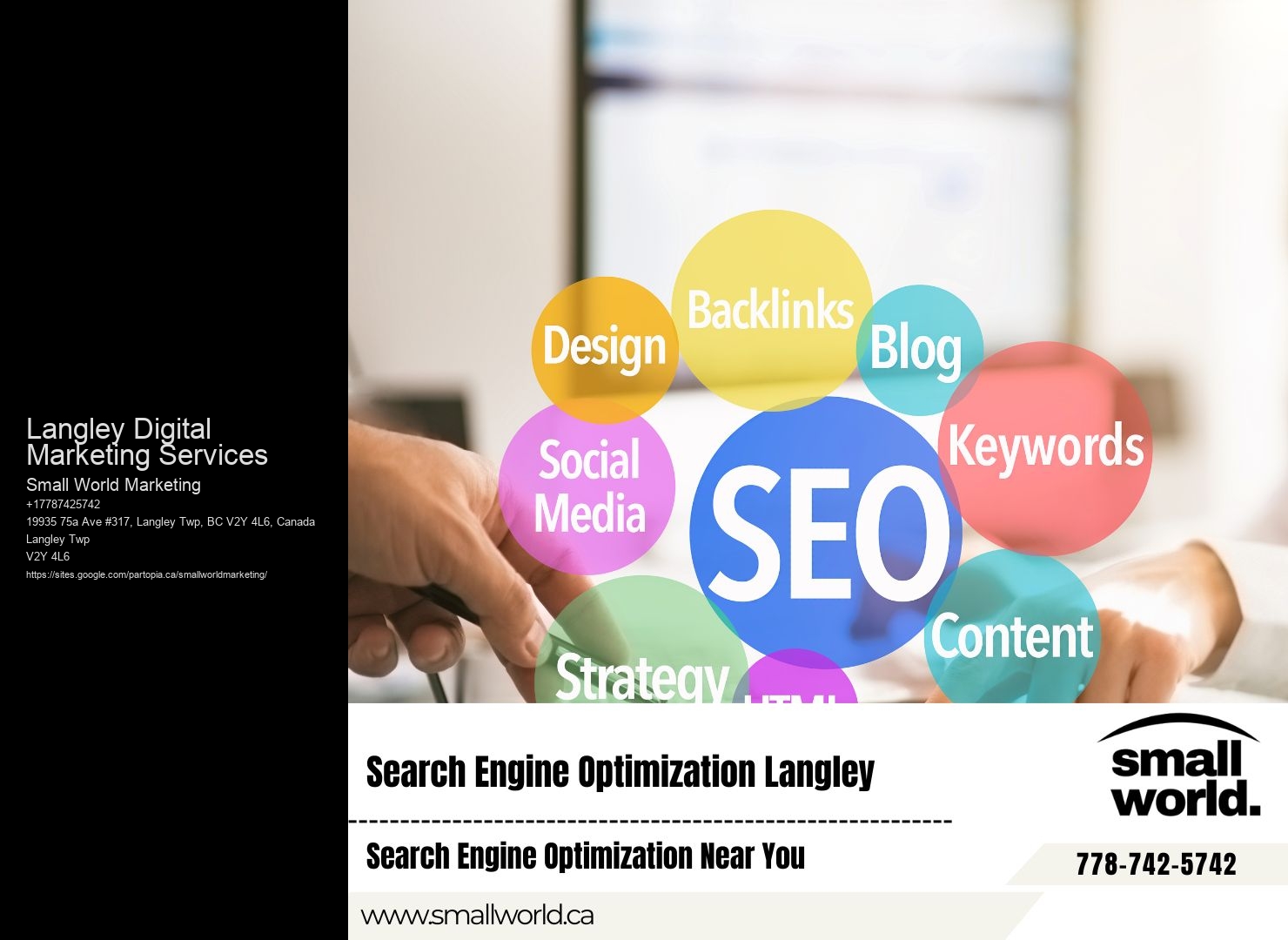 You're wondering how businesses outside Langley can target the local market? Small World Marketing's SEO strategies are designed to help you penetrate this area, making your brand visible and relevant to the Langley audience.